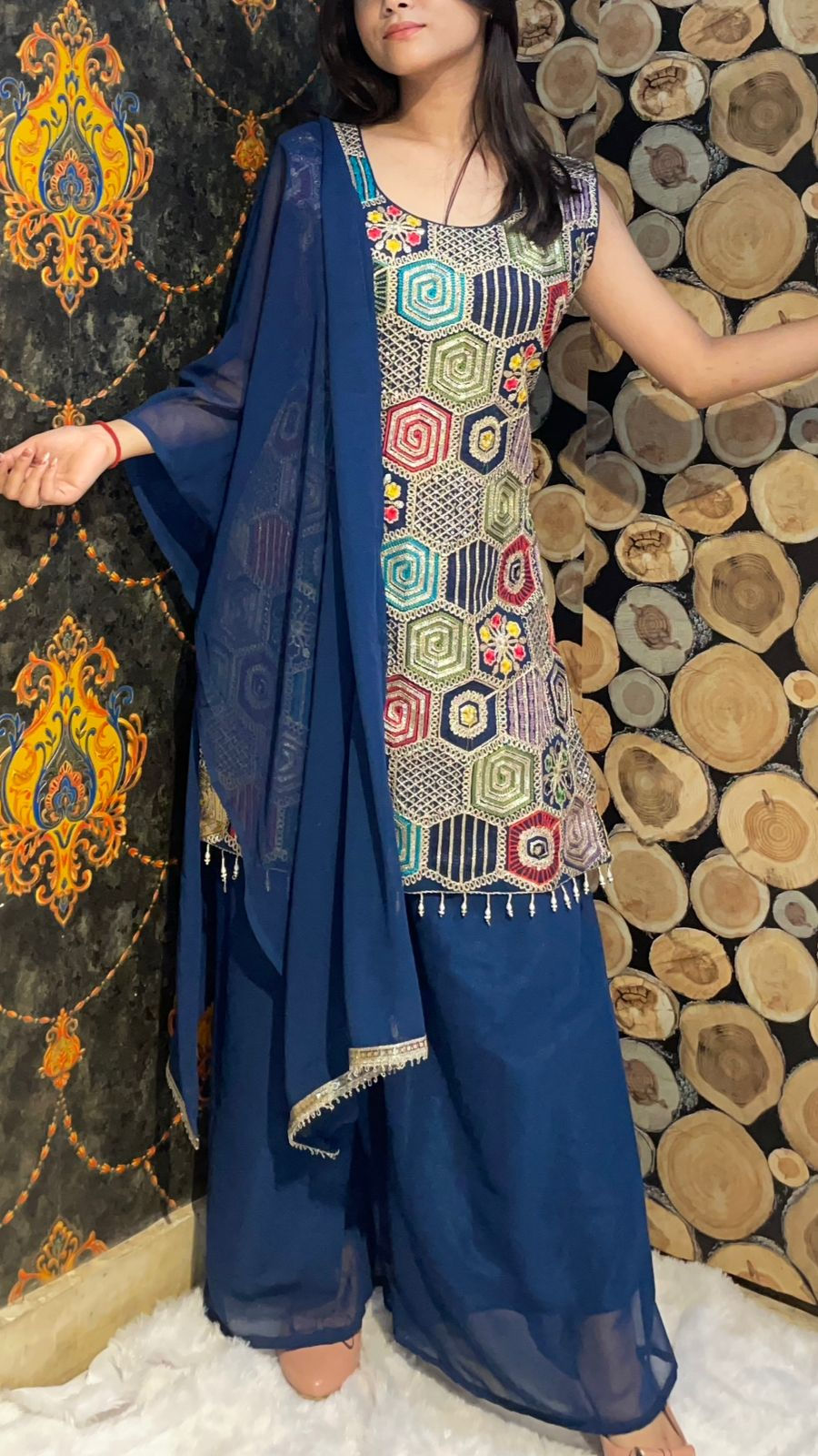 Set includes: Sharara , Kurta and dupatta